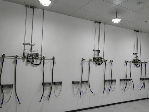 2.4N離氮氣經理主管線用到OD3/8”(6.35mm)的供水線路,0.5Mpa阻力下作量會達8M3/幾小時,是實現常見用氣所需,支線用到OD1/4”(6.35mm)的供水線路。用電弧焊接三通管件區分支路來對設施來供氧。