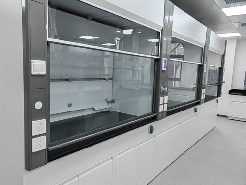 2)燈光:采取長方形能源管理孔燈,隱蔽于頂板上,不與開窗通風柜中試驗設計有毒氣體間接使用,易替換,色度完整充分滿足試驗設計想要。